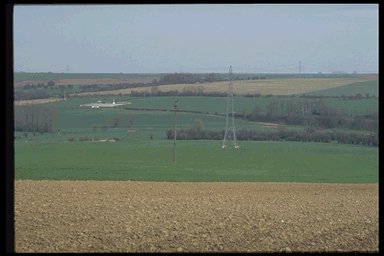 This is a general view of the battlefield taken from the British side of the Selle Valley. The cemetery in which George is buried can be seen halfway up the opposite slope. The line of bushes running into the bottom of the cemetery marks the position of the Le Cateau to Neuvilly road. The line of bushes running left to right above the cemetery marks the position of the railway line. The next line of bushes which runs up towards the top of the far side of the valley marks the position of one of the ravines which run down the side of the slope, and which the Germans used to try to infiltrate behind the British troops.