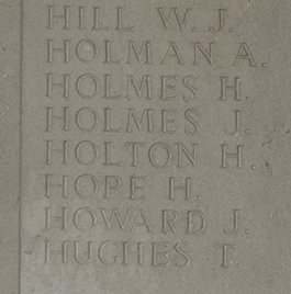 Private Holmes' body could not be identified at the end of the War and he is commemorated on the Le Touret Memorial to the Missing.